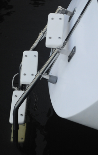 people climbing the ladder. New stand offs. Starboard like material installed on welded on tangs to stairs |