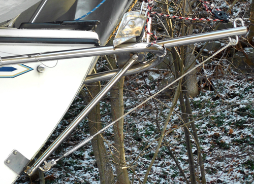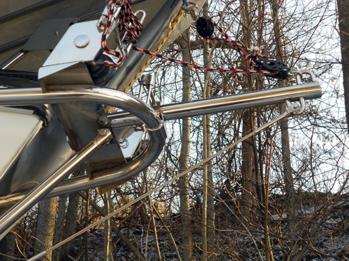 Another picture showing the addition/modification to the existing anchor roller with 3/16 SS adjustable bobstay | |